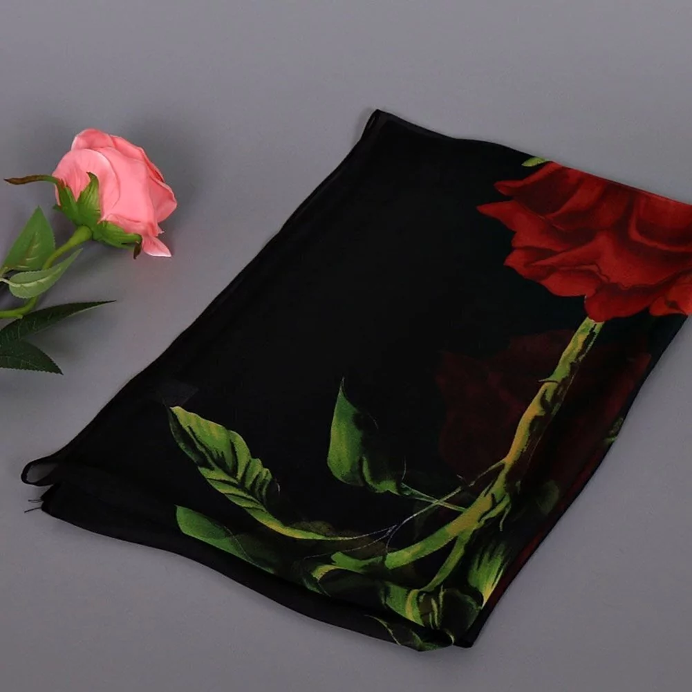 Lenço em crepe chifon preto medindo aproximadamente 155 cm x 50 cm